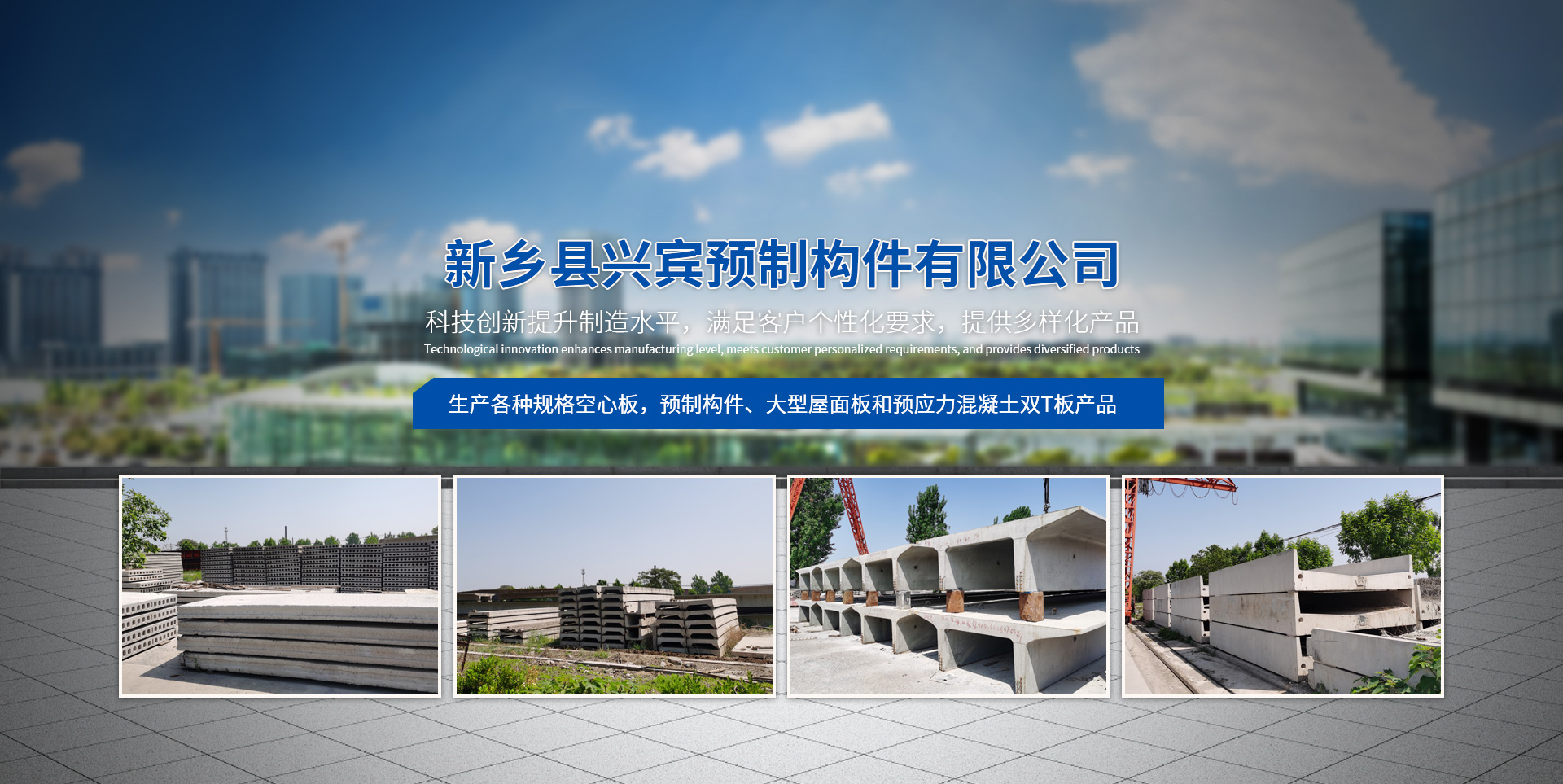 新鄉縣興賓預制構件有限公司(原新鄉中聯 總公司預制廠),建于1994年3月,廠址位于新鄉縣小冀鎮青龍路西段(原廠址南環路),地理位置優越,交通方便,生產各種規格空心板,預制構件、大型屋面板和預應力混凝土雙T板產品。  隨著我國經濟改革開放以來,各工業企業,逐步擴大,廠房增加建筑業也在逐步開拓,生產出來的產品遠遠滿足不了市場需求,為此我公司經理杜興賓同志進過多方面社會調查,發現新鄉縣、鄉、鎮缺少大型屋面板及大型預制構件的生產行業,于是投資350萬元,改建新鄉中聯 總公司預制廠,擴建場地40余畝,增添了行車和汽車、吊車等吊裝運輸工具,以及生產大型屋面板嵌板、檐口板,天溝相配套鋼模等設備80余套,擁有對焊機、電焊機、調直機、冷卻機、油壓漲拉機等先進機械設備數臺,不僅適產品質量更加有了確切保障,而且提高了企業的經濟效益。我廠的宗旨是:“質量保證”。幾年來,公司以雄厚的經濟實力,嚴格的管理體系及優良的產品信譽,取得了用戶的信賴與好評。1998年4月以來,產品榮獲新鄉縣建筑工程質量監督站頒發的“質量合格等級優良”證書。  JS預應力混凝土雙T板,是興賓預制構件有限公司生產的一種新型預應力混凝土構件。該板由高強度低松弛螺旋肋鋼絲和鋼絞線作為受力鋼筋,生產多種跨度的預應力混凝土雙T板構件。  JS預應力混凝土雙T板的性能、特點:  1、板的跨度大(9.0-24.0m),承載力高、結構性能可靠。  2、自重輕、節約鋼材:和相同跨度的屋面梁體系相比,減輕結構自重,同時大大降低房屋的結構高度,綜合效益更為客觀。  3、由于該板具有跨度大,故可改變傳統觀念,簡化建筑結構設計,減少承重墻和梁、柱設置數量,使設計更為靈活,結構設計趨于簡單,大大降低建筑工程綜合造價,提高企業經濟效益和社會效益。  4、JS雙T板應用范圍廣。  該板可廣泛用于多種工業與民用建筑的屋面板,特別用于跨度大的結構屋蓋,如中小型禮堂、會議廳、超級商場、單層多跨廠房、中小型體育設施的屋蓋。該產品設計壽命50--70年,防火防腐,質量輕,承載力高,便于設計和施工,工期短、造價低,搬遷可重復利用。
